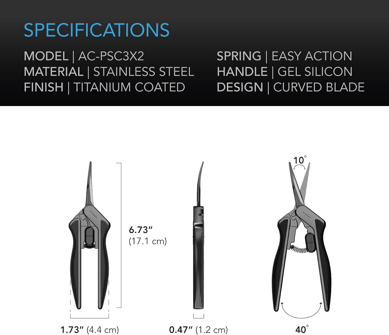 AC Infinity 6.6” Stainless Steel Curved Pruning Shear 2-Pack, Lightweight Ergonomic Design, Curved Precision Blades with Nonstick Titanium Coating for Gardening, Hydroponics, Grow Tents
