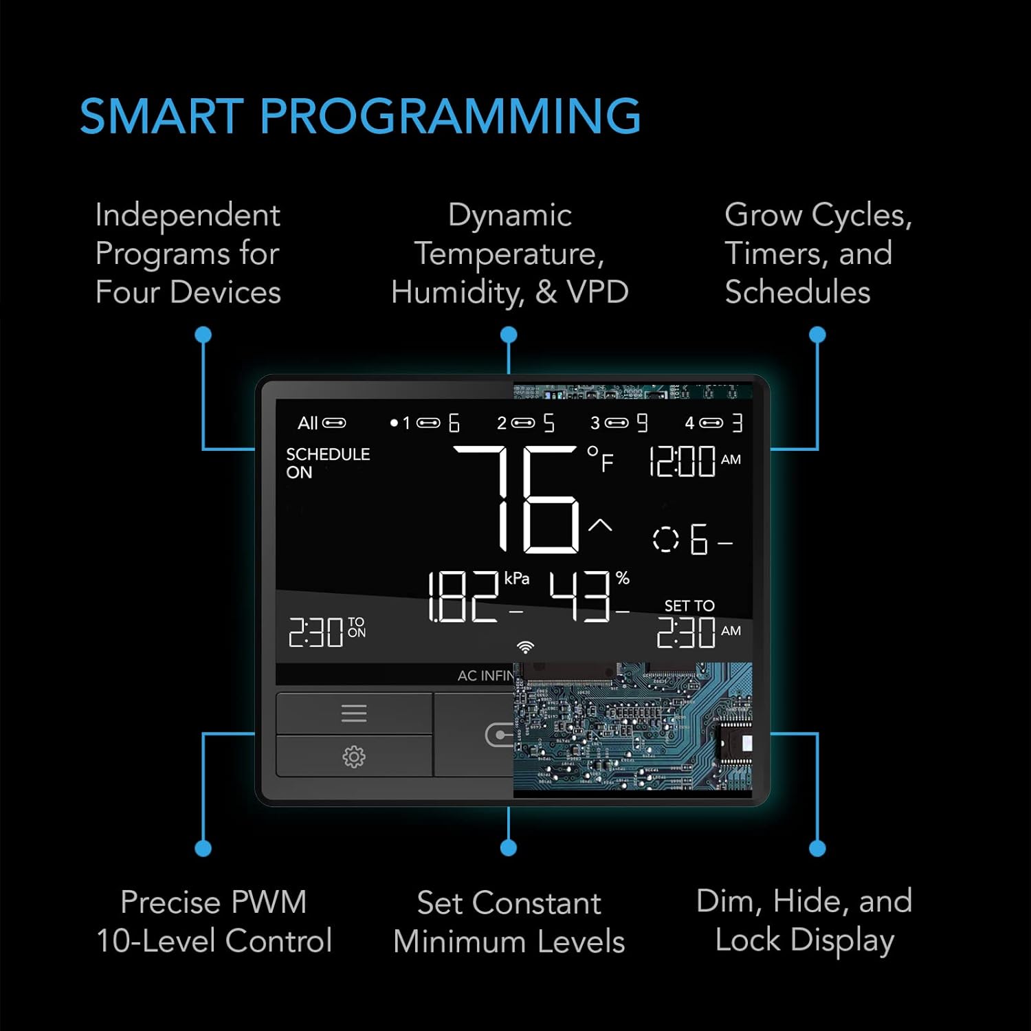 - A digital controller designed to equip AC Infinity devices with smart controls to produce the optimal environment.