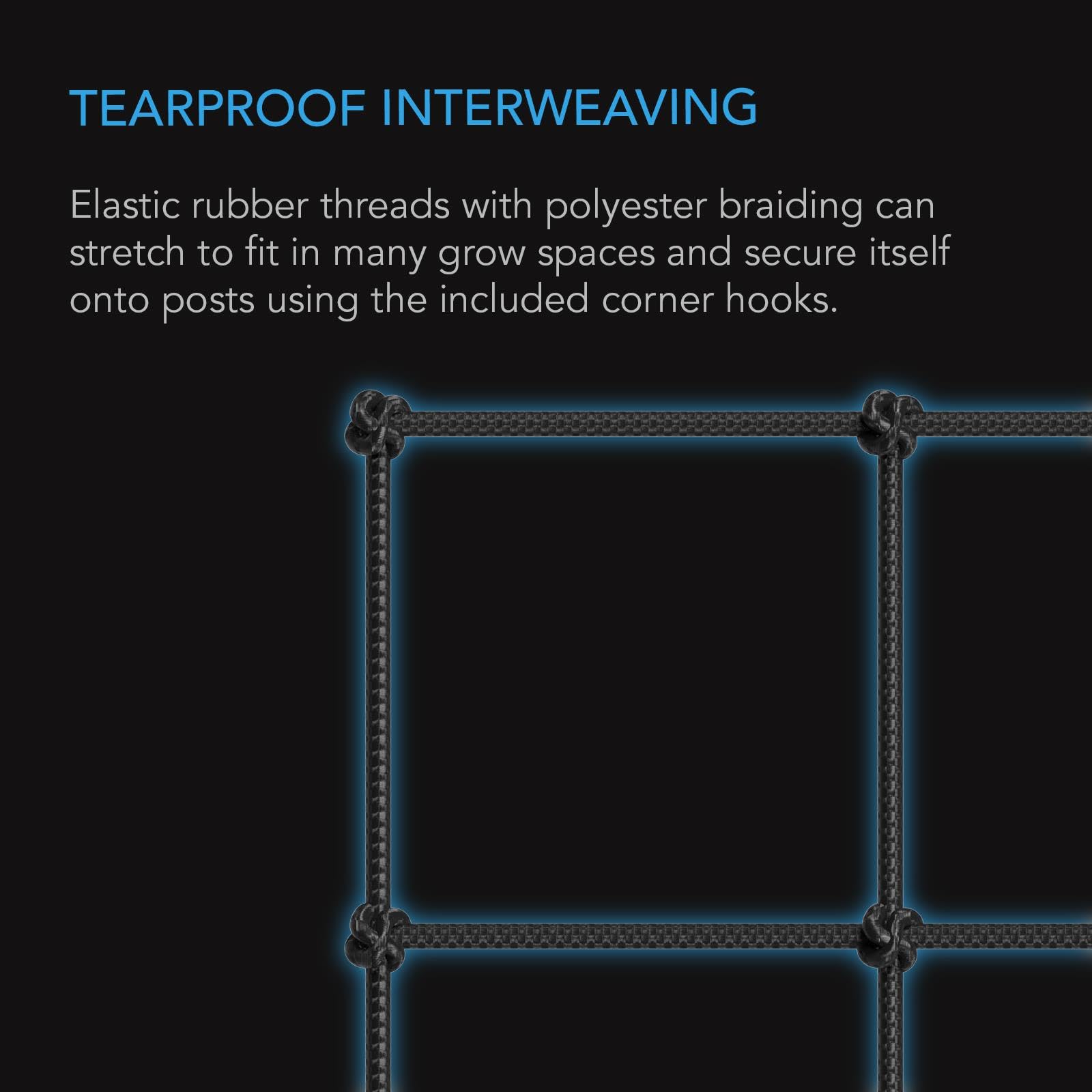 - Versatile steel hooks securely clip the height-adjustable trellis net onto your grow tent's frame.