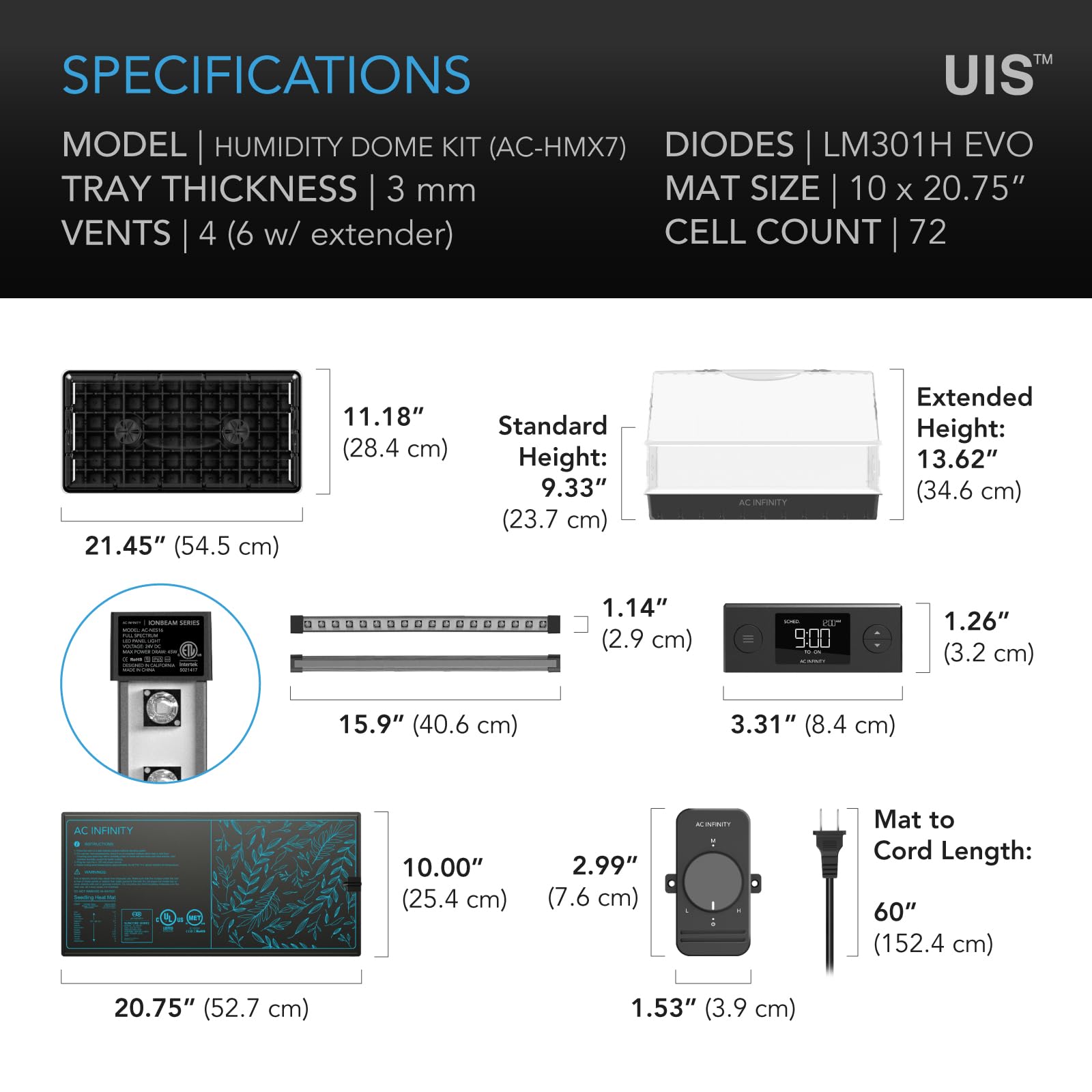 AC Infinity Humidity Dome, Heavy-Duty Germination Kit with 3 mm Thickest Dome, Sturdy Drip Tray, 5x8 Cell Seedling Tray, Vented Height Extension Panels, for Seed Starting, Propagation, Cloning Plants