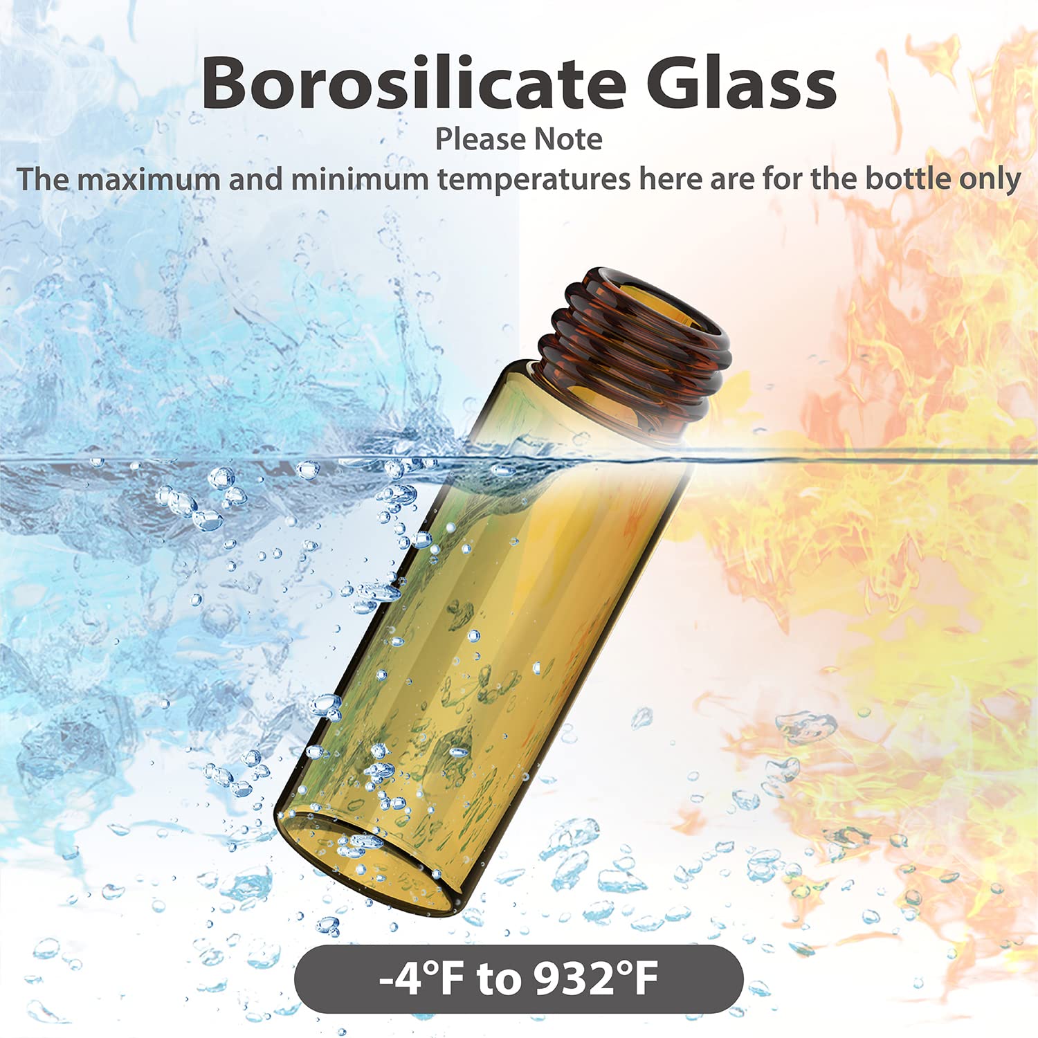 FOUR E'S SCIENTIFIC 100 Pack 4ml Sample Vials, 1 Dram Amber Glass Vials with Black PP Screw Caps, Liquid Storage Glass Thread Bottles, for Lab, Essential Oil, Perfume, Reagents