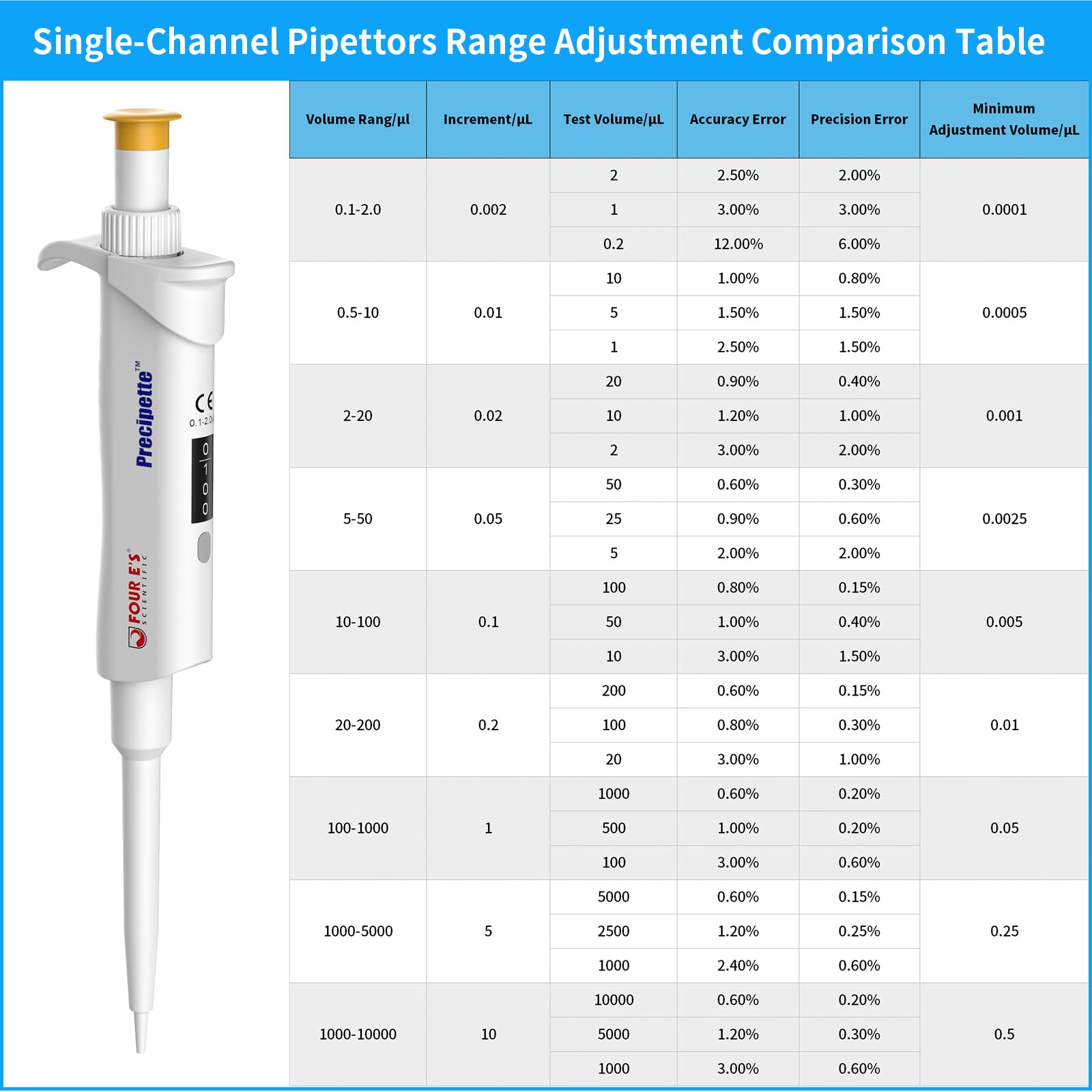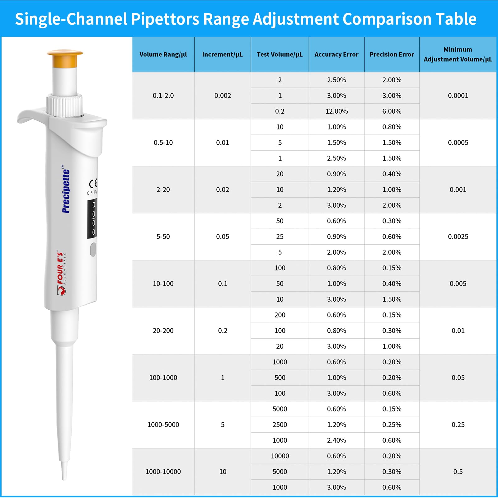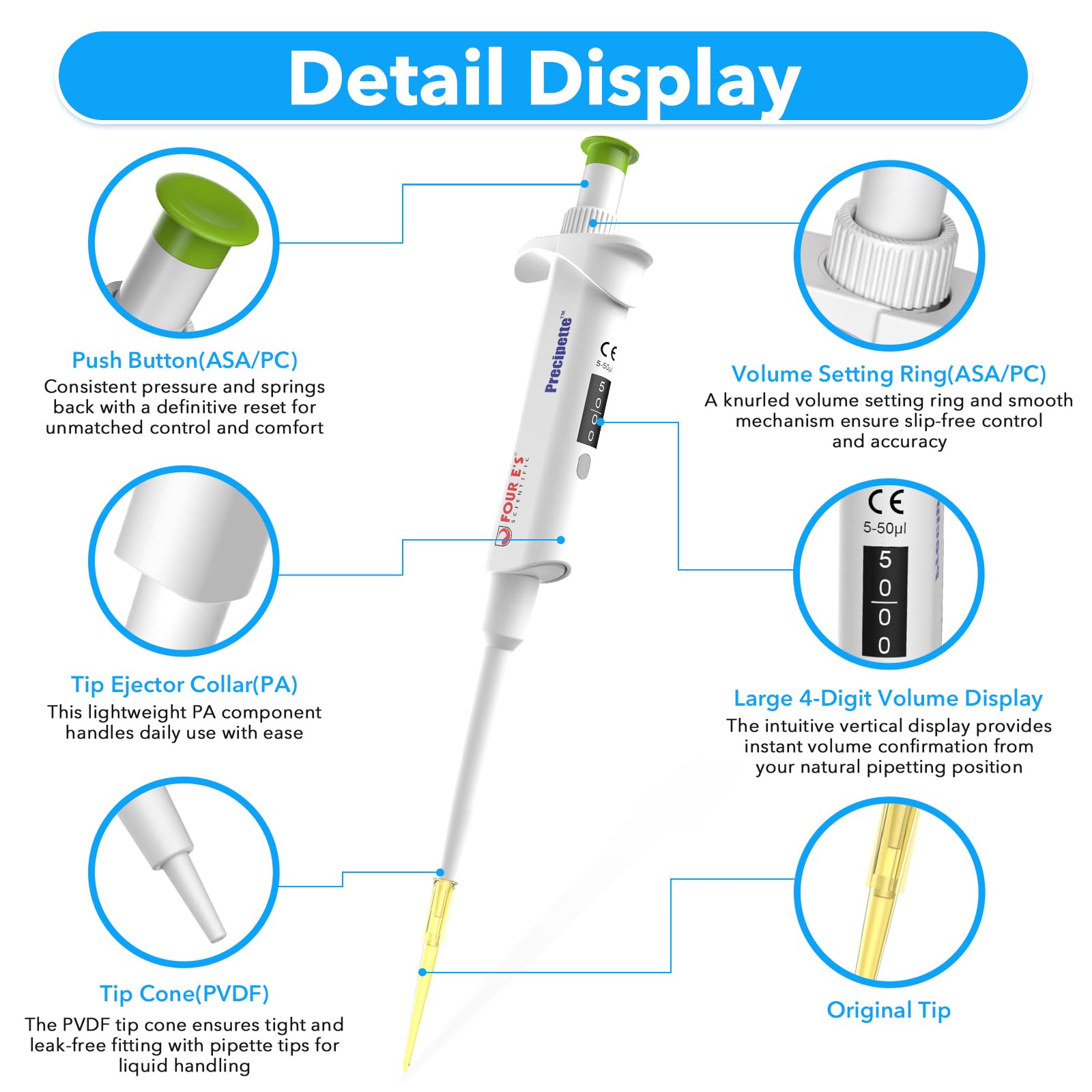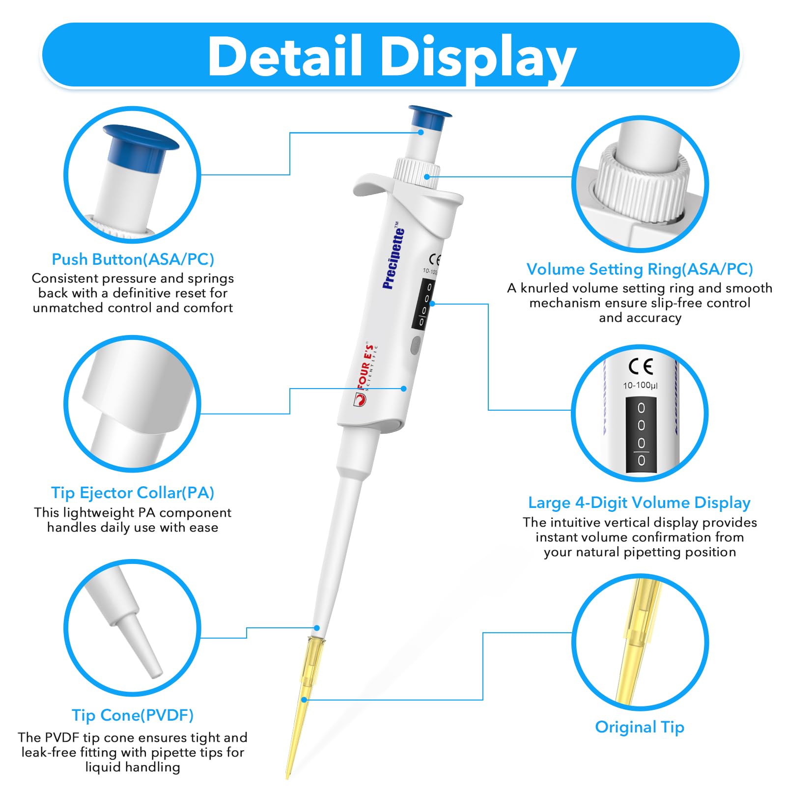 - Precise Volume Control: With a dispensing volume range of 20-200μl in 0.2μl increments, this pipette features a large, easy-to-read 4-digit display for superior precision compared to standard 3-digit screens, and is compatible with most universal pipette tips