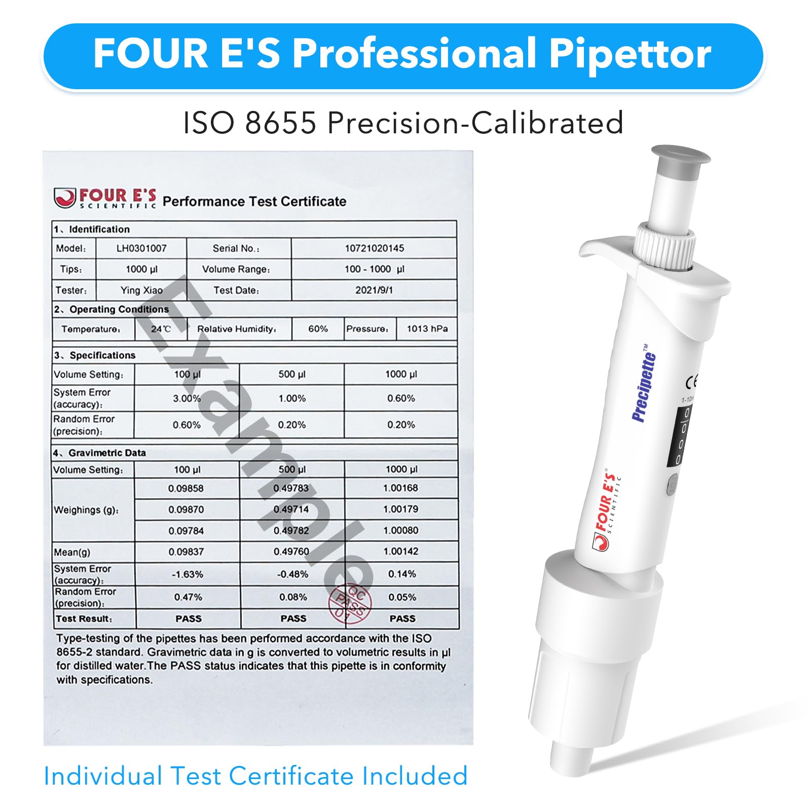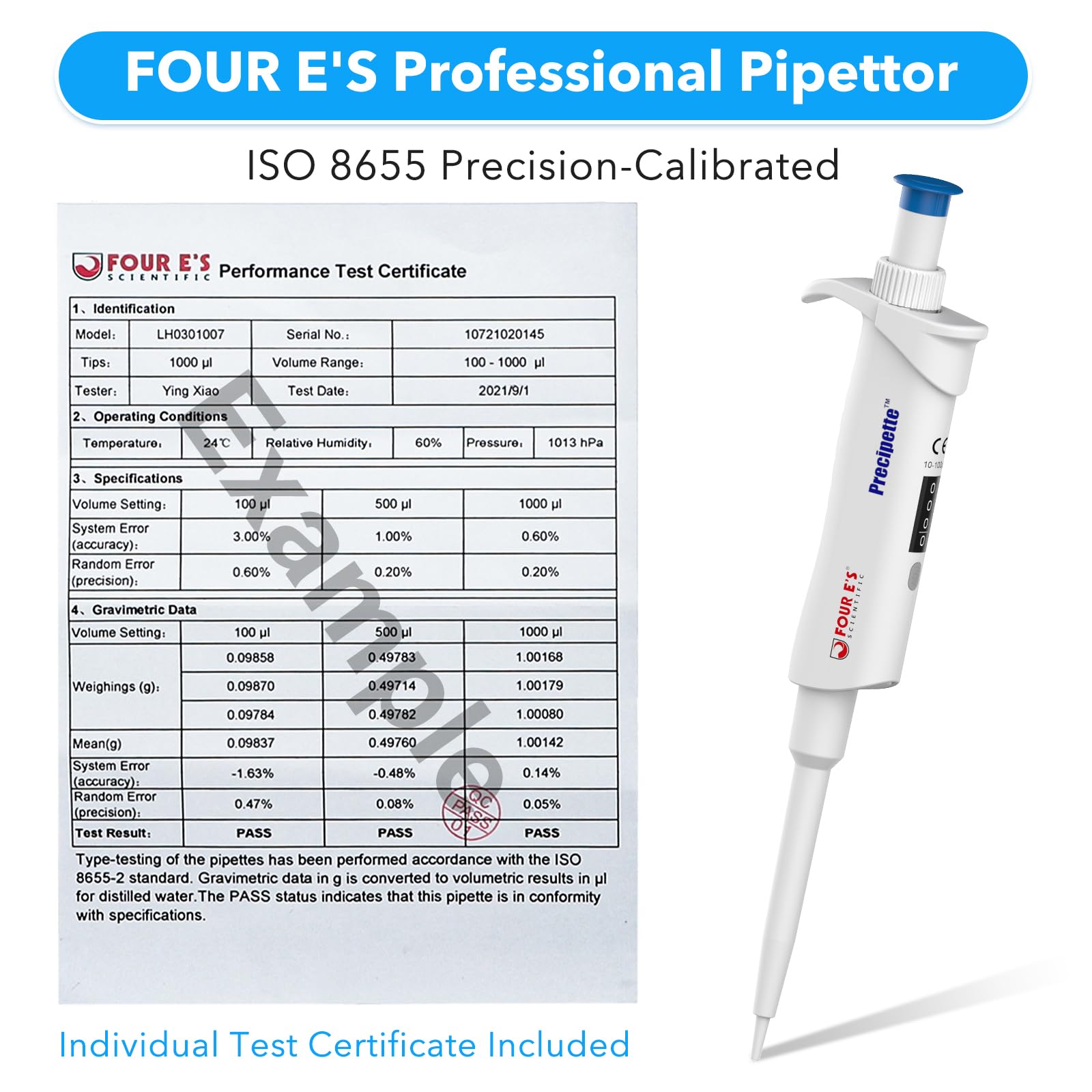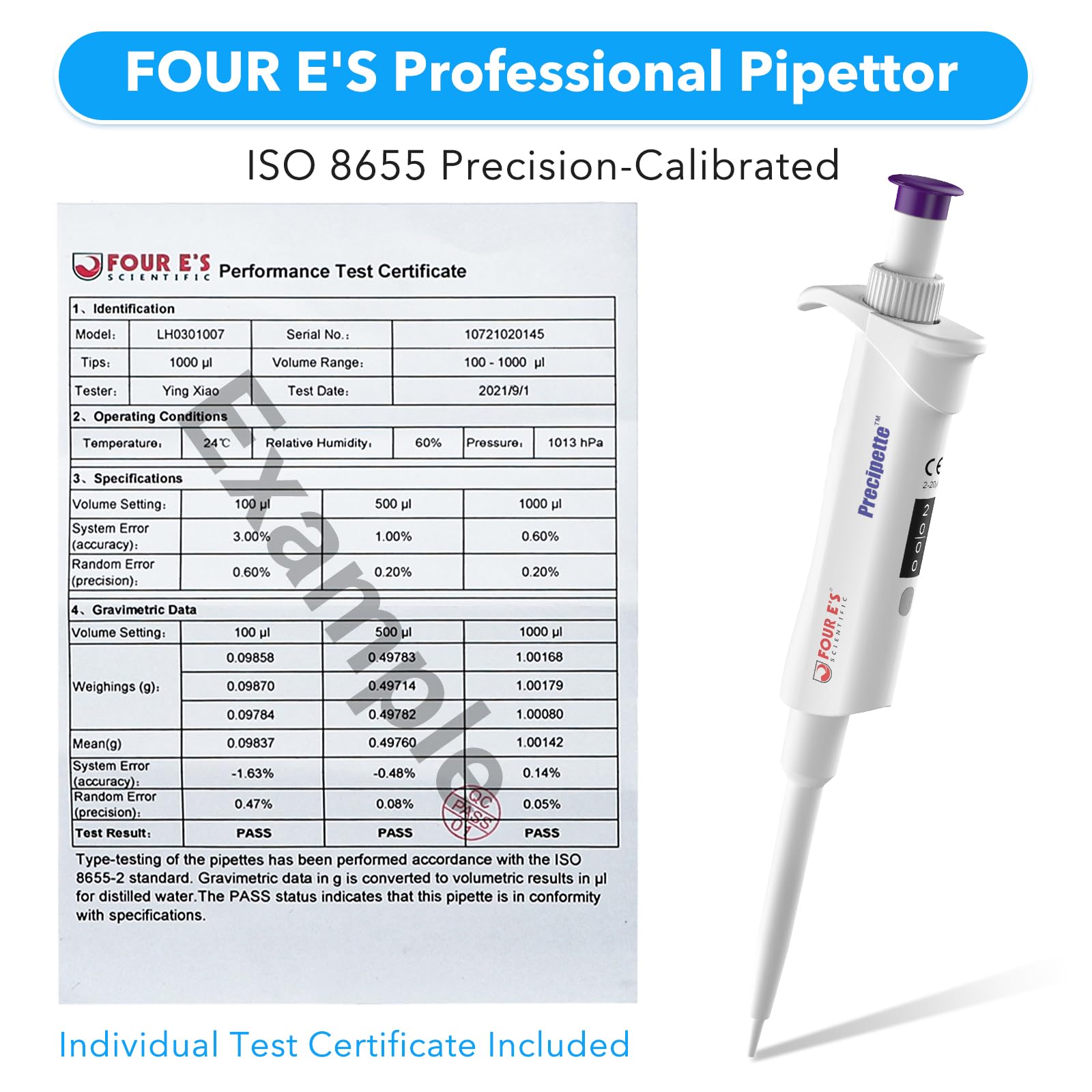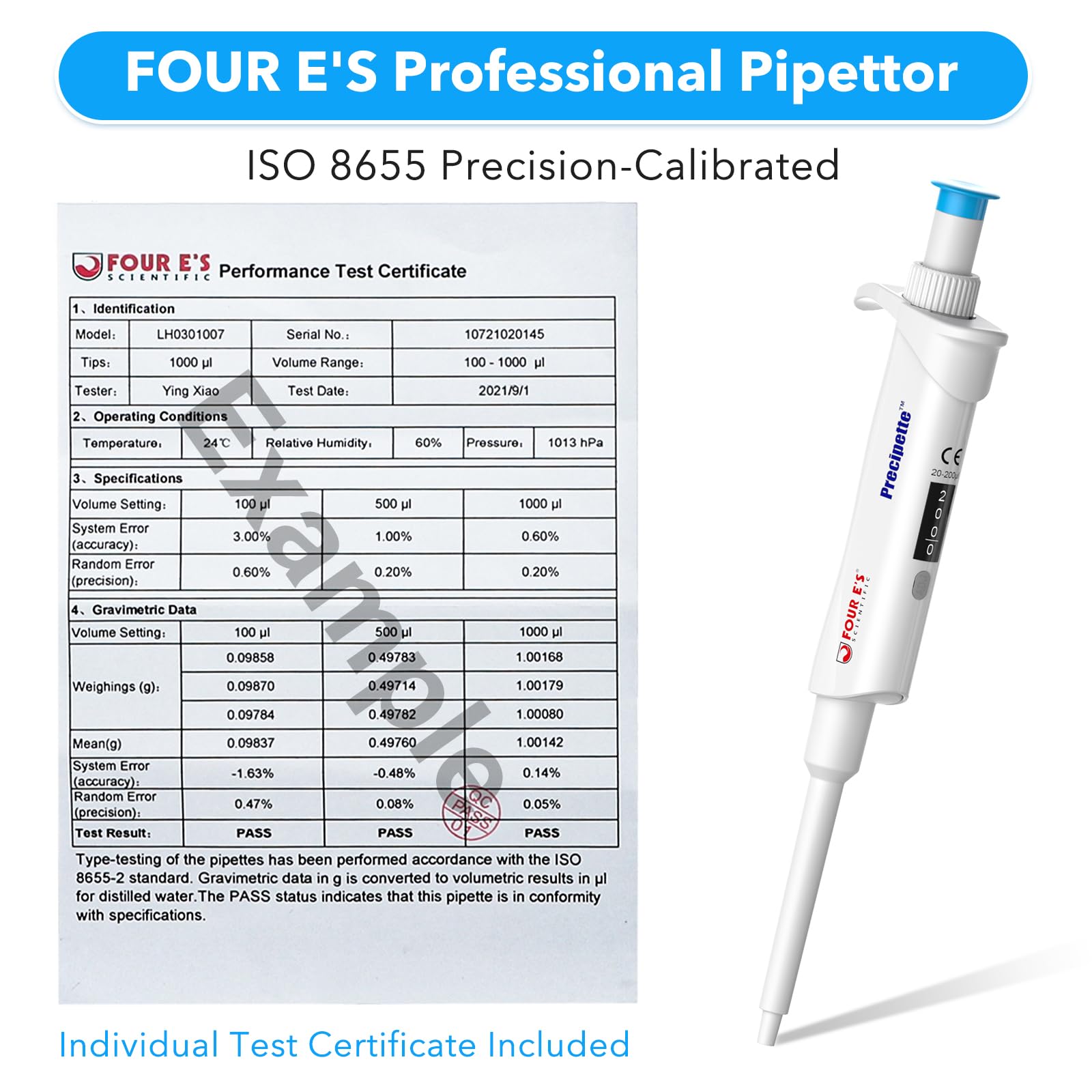 - Professional Calibration: Each pipettor is calibrated according to ISO8655 and comes with an individual test certificate, ensuring reliable accuracy. It is highly suitable for laboratories, industrial settings, food and cosmetics experiments, as well as applications in coral reef saltwater aquariums and home brewing