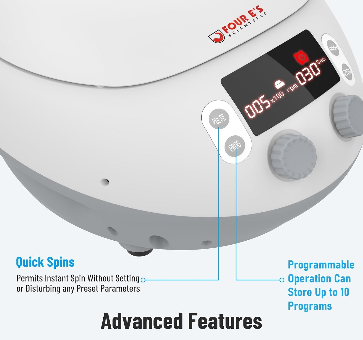 - Customize with Ease: Our benchtop centrifuges can be programmed to store up to 10 custom programs, giving you the freedom to select and save your desired speeds and durations for various applications