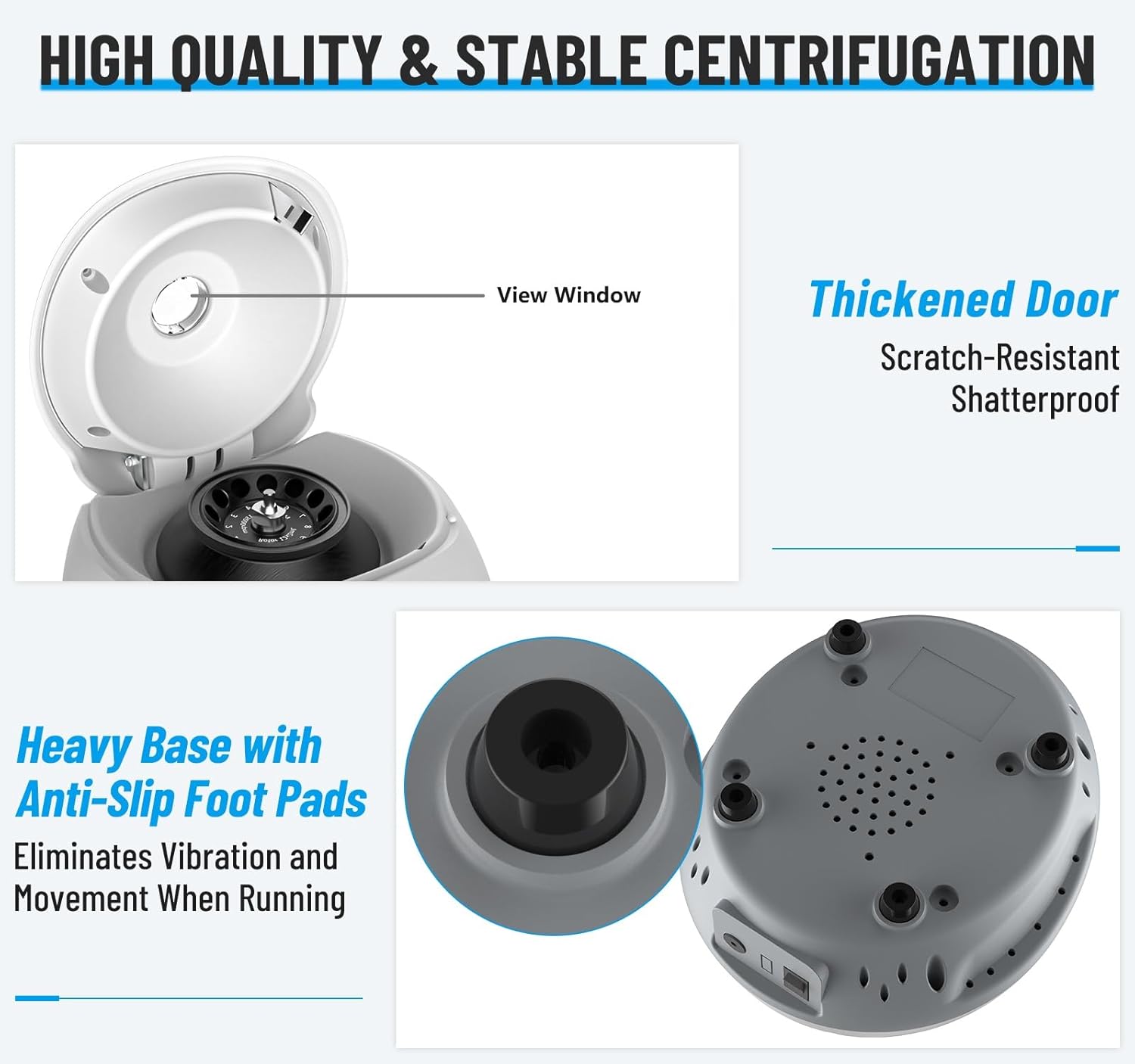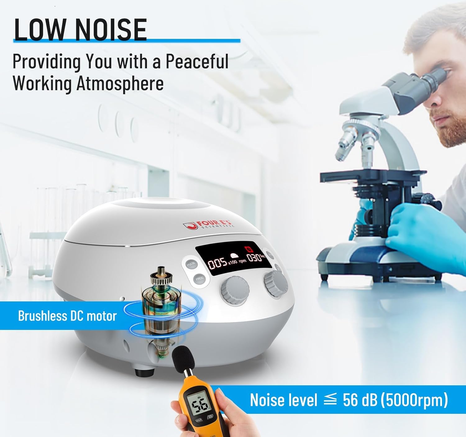 - Long - Lasting & Quiet: Powered by a brushless motor, the lab centrifuge ensures longevity and operates quietly with noise levels below 56 dB, providing a low-noise working environment