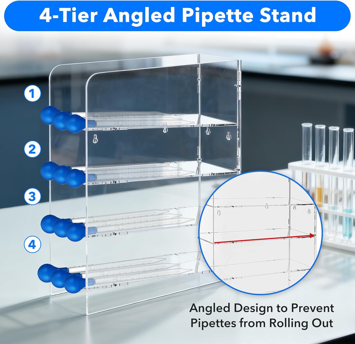 - Spacious Storage Capacity: The pipette rack features 4 angled compartments that offer ample space to neatly organize a variety of glass or plastic pipettes