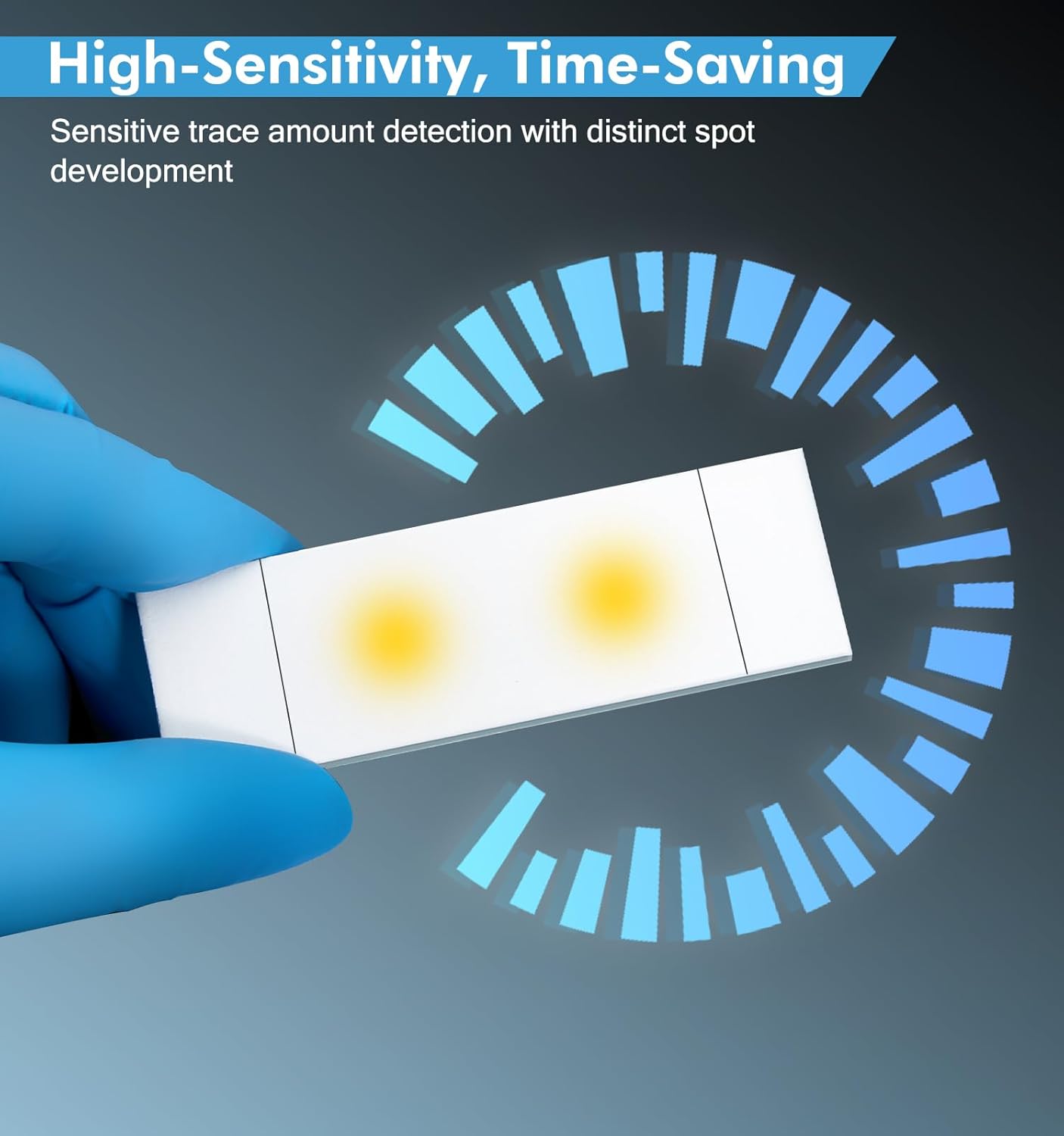 - Rapid Results: The silica gel plates provide sharp, non-diffused spots after short development times for clear detection of trace components