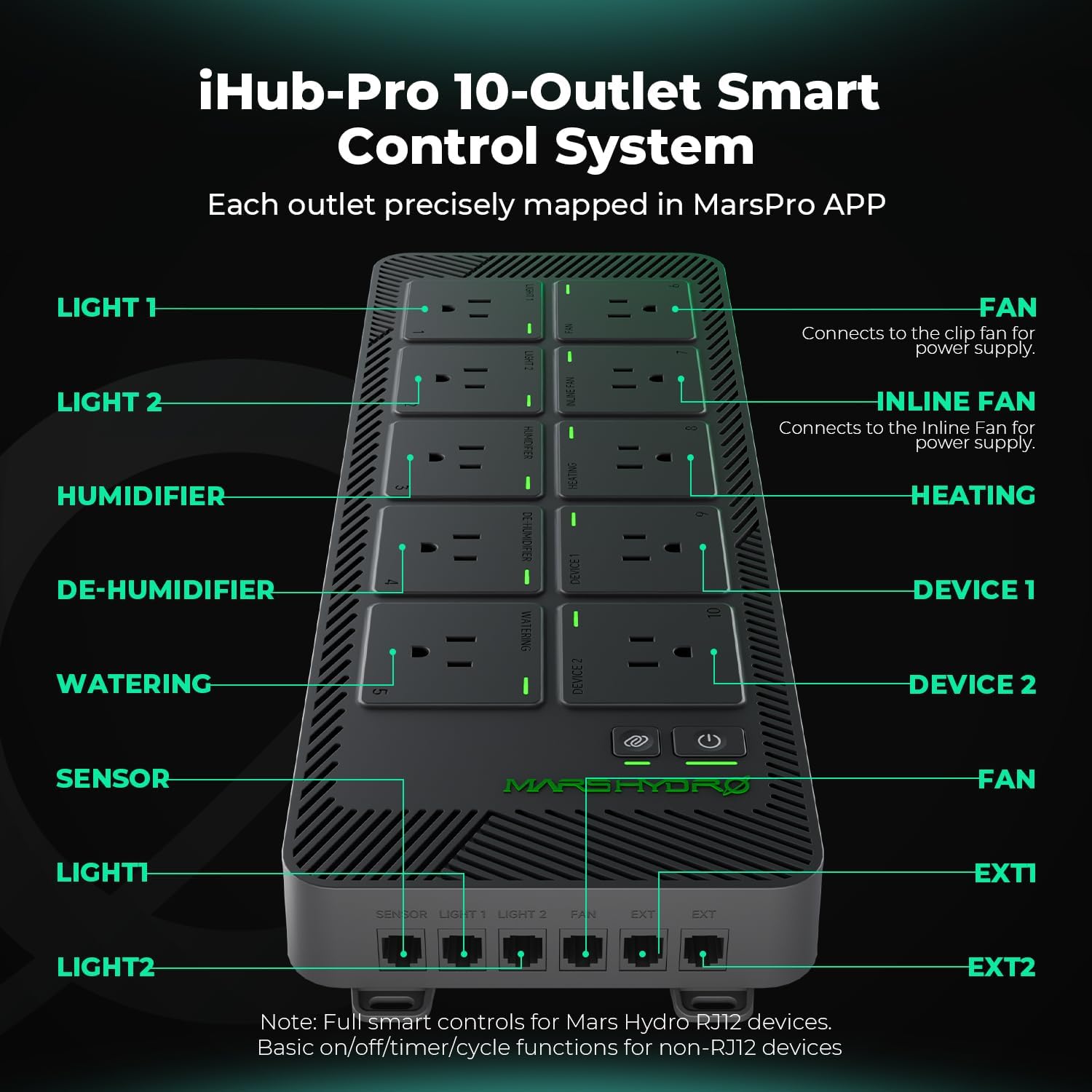 MARS HYDRO 2025 TSL2000 300Watt LED Grow Light and iHub-Pro Smart 10AC Power Strip Kit 10-Outlet All-in-One Grow Room Hub