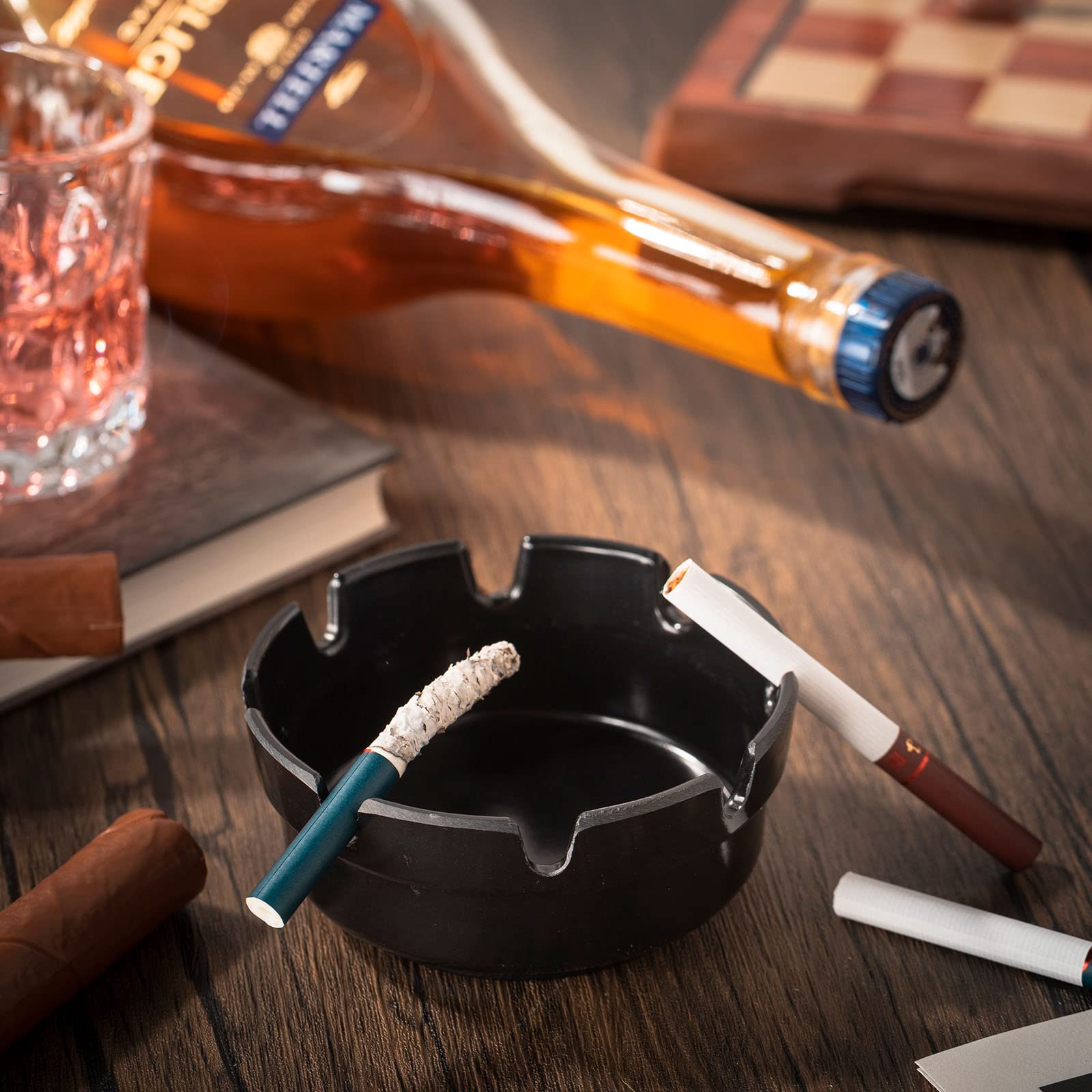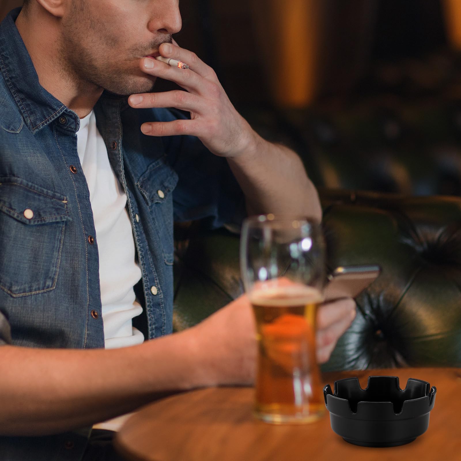 - Practical and Modern Design: the practical restaurant ashtray is black, simple and elegant, with dents combined with a multifunctional round design that allows stacking, saving storage space and reducing the frequency of cleaning the ashtray for longer use