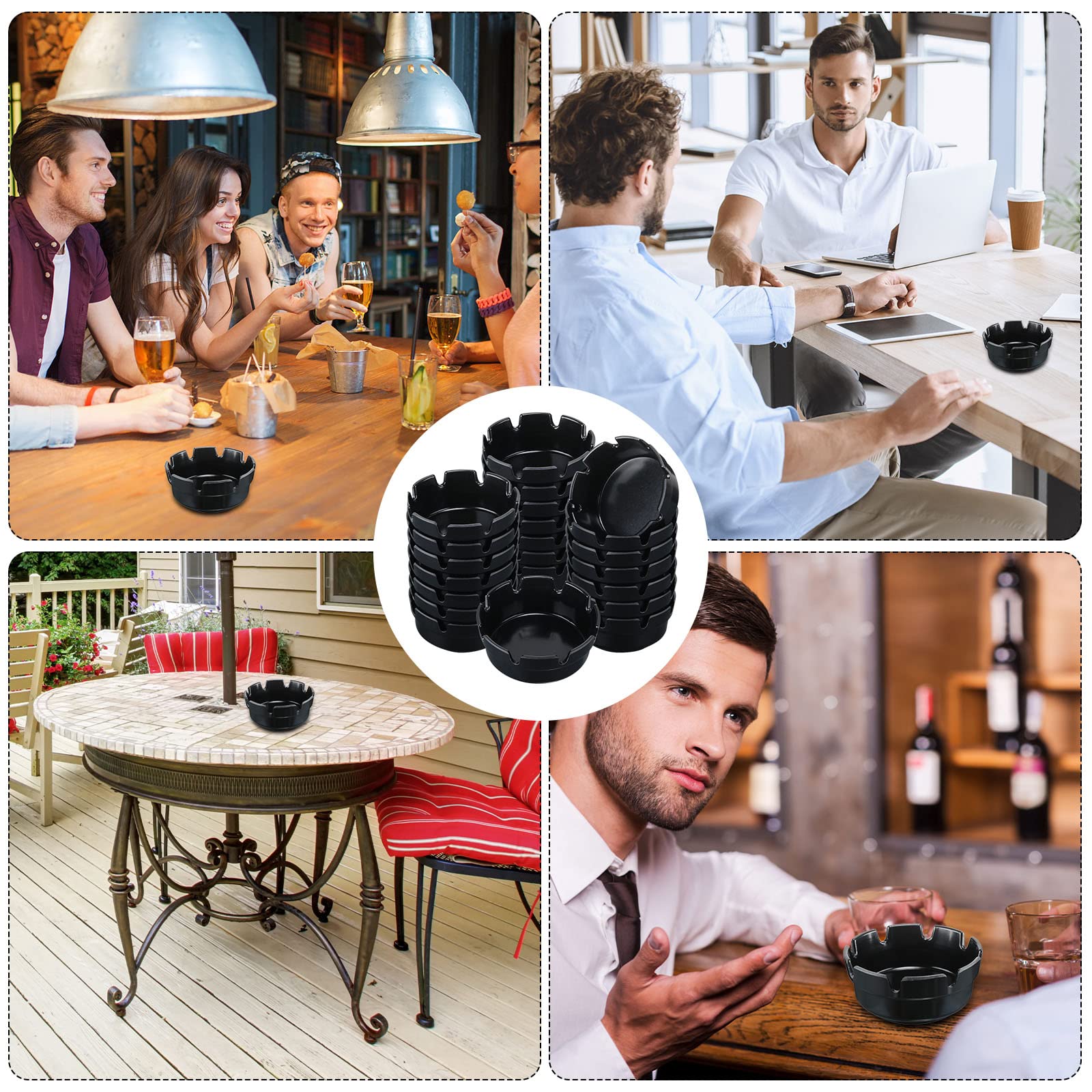 - 24 Pieces to Meet Your Various Needs: you will get 24 black ashtrays in classic colors to match any home style, sufficient quantity to meet your daily use and replacement needs; You can share them with friends, family and elders