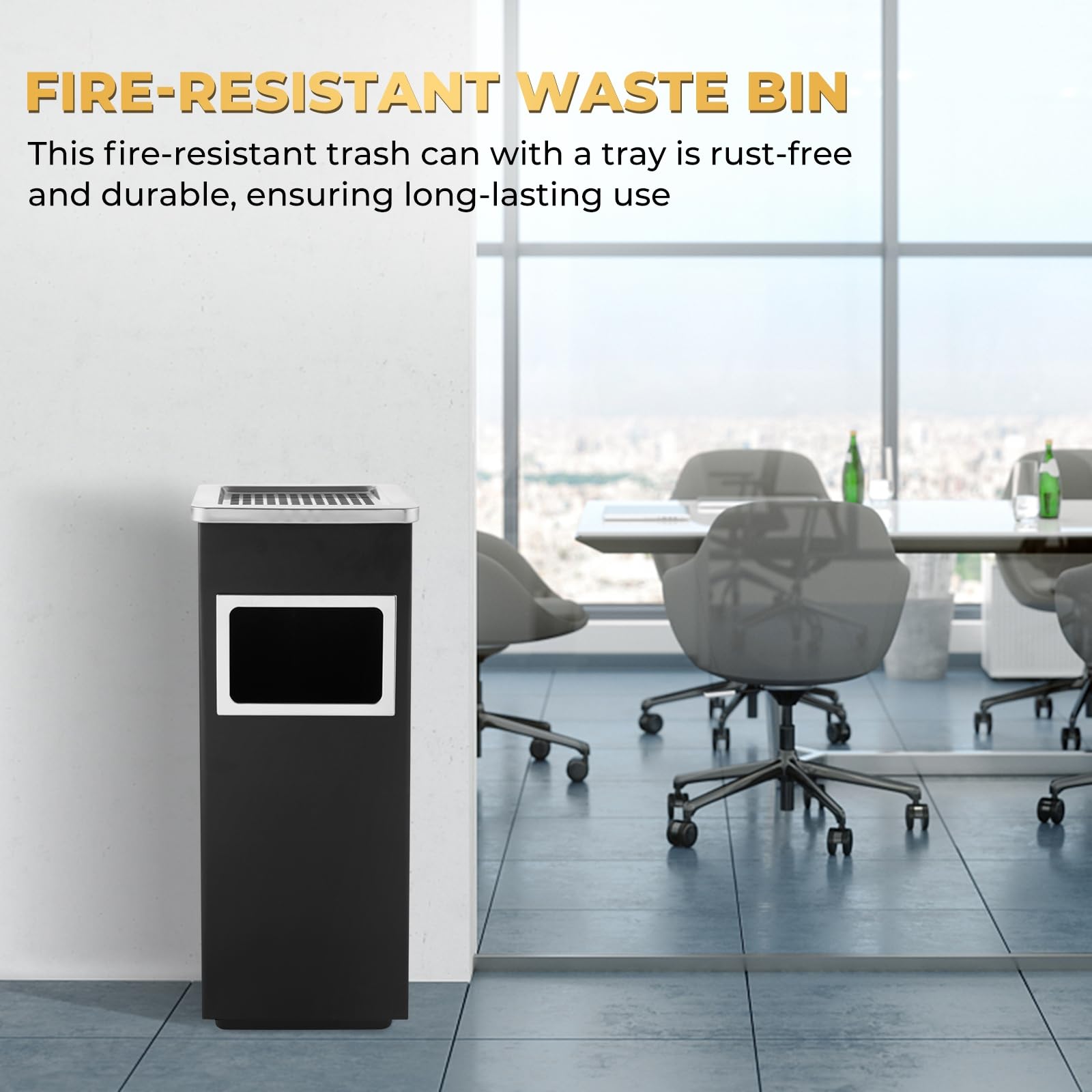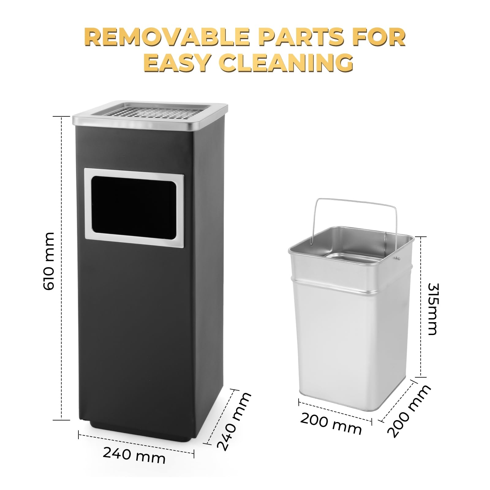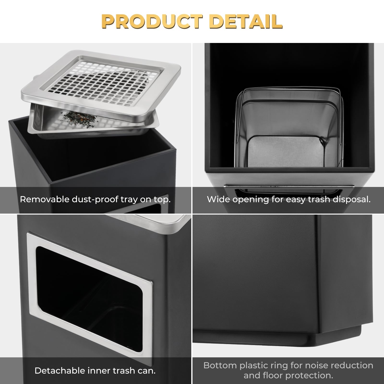 Trash Can Outdoor Waste Container Square Stainless Steel Trash Can with Removable Inner Bucket for Disposal Commercial Waste Container 9.45‘’ x 9.45‘’ x 24.02‘’-Black