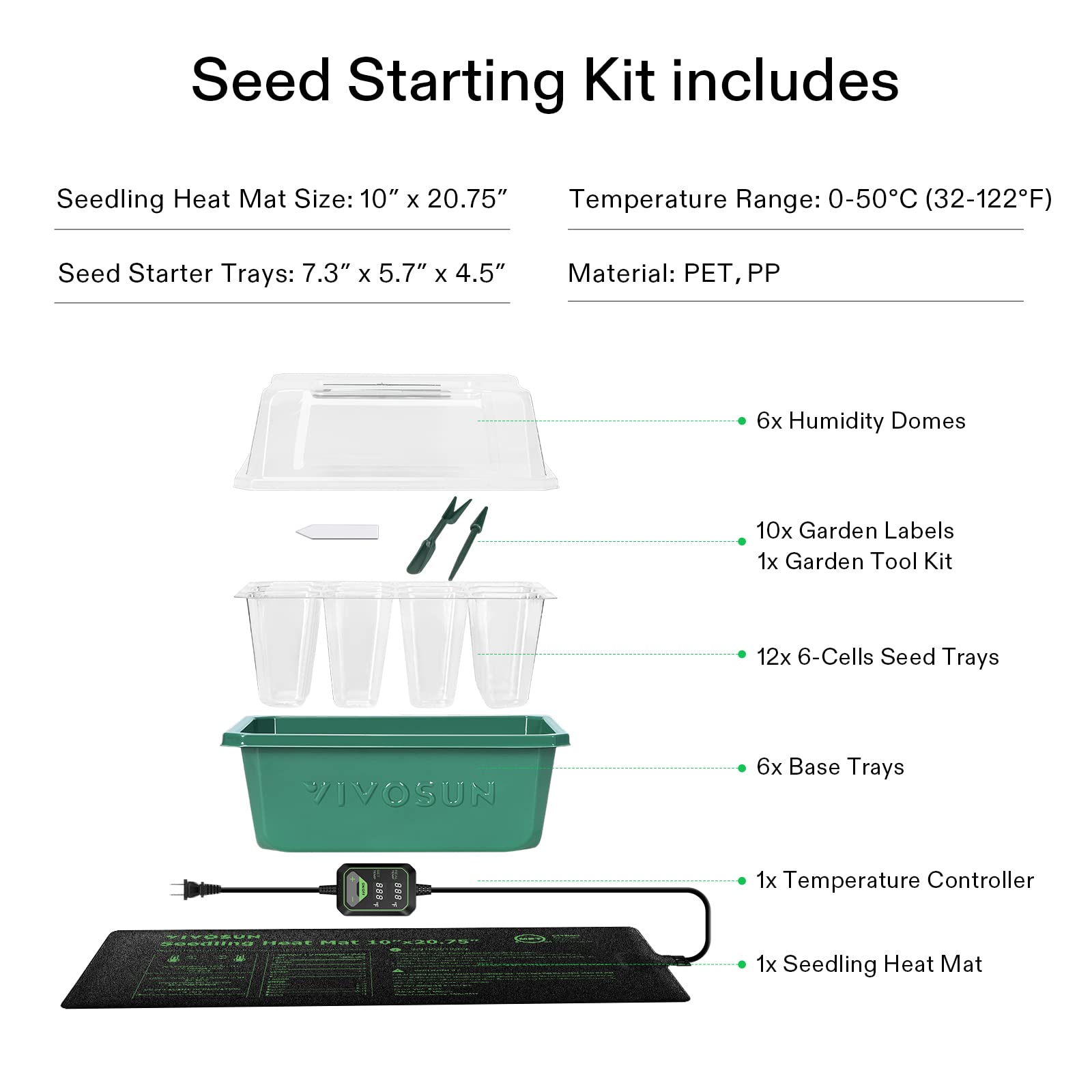 - Compatible with Heat Mats: Made of durable, high-quality material, our seed starting tray is compatible with a heating mat that operates at a temperature range of 0~120℉