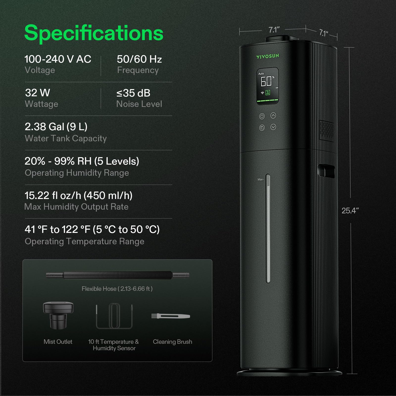 - Superior Humidity Control: This advanced ultrasonic humidifier delivers whisper-quiet, precise humidification with 1% humidity resolution; A highly sensitive external temperature and humidity probe provides accurate environmental readings, enabling quick adjustments