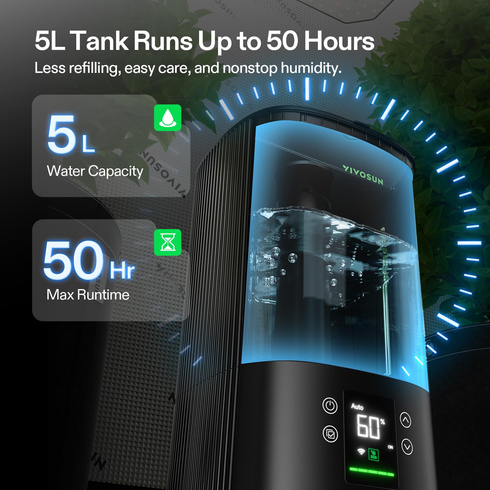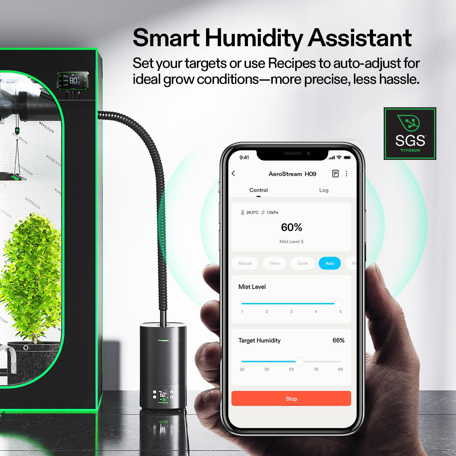 VIVOSUN AeroStream H05 Intelligent Wi-Fi Humidifier, 1.32 Gal / 5 L Humidifier with Temp & Humidity Probe, Smart Remote Control, Designed for Growers