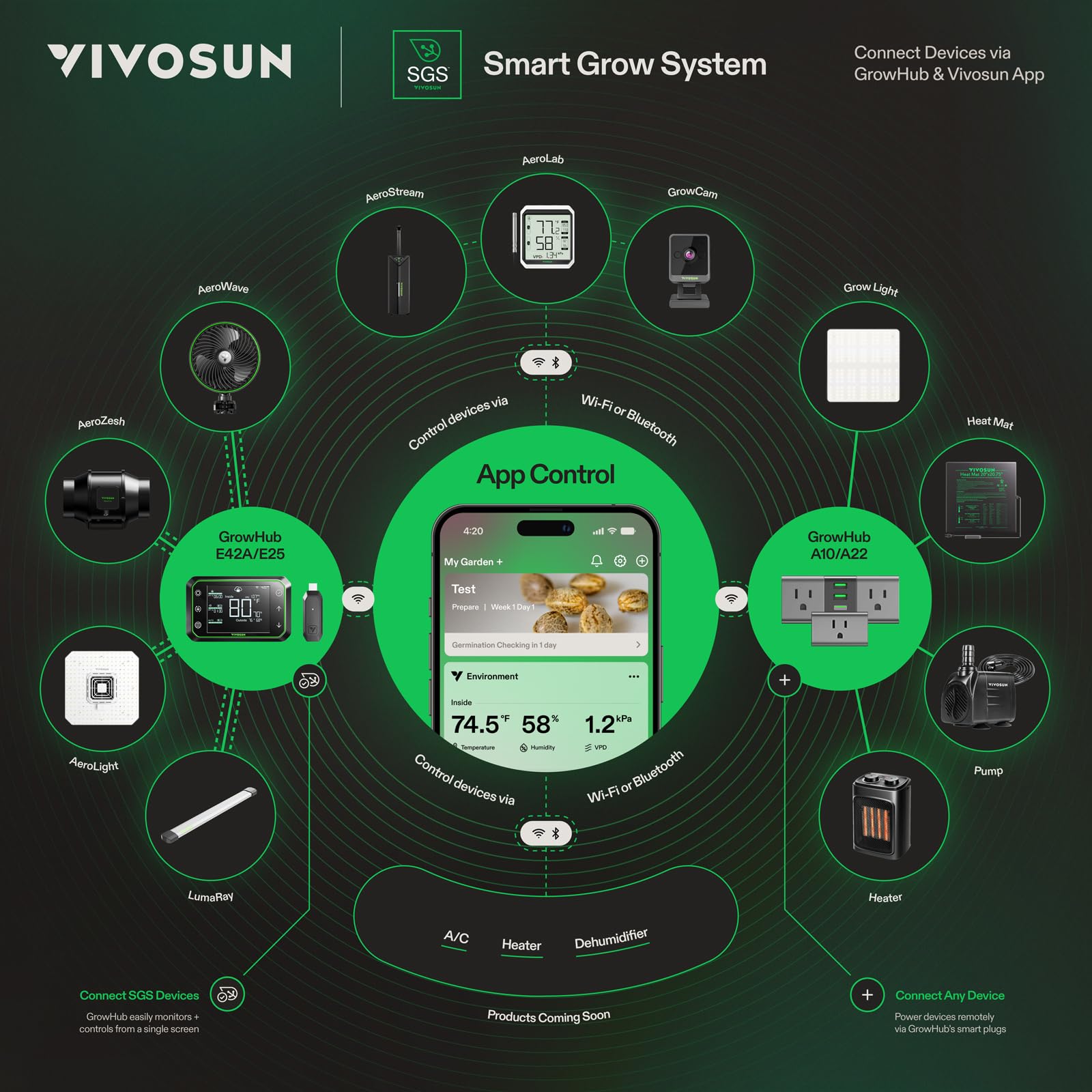 - Smart Control and SGS Compatible: WiFi-enabled for seamless connection to the Vivosun app, offering remote control and real-time notifications; Works with the Vivosun Smart Grow System (SGS) to run grow recipes and synchronize with other connected devices