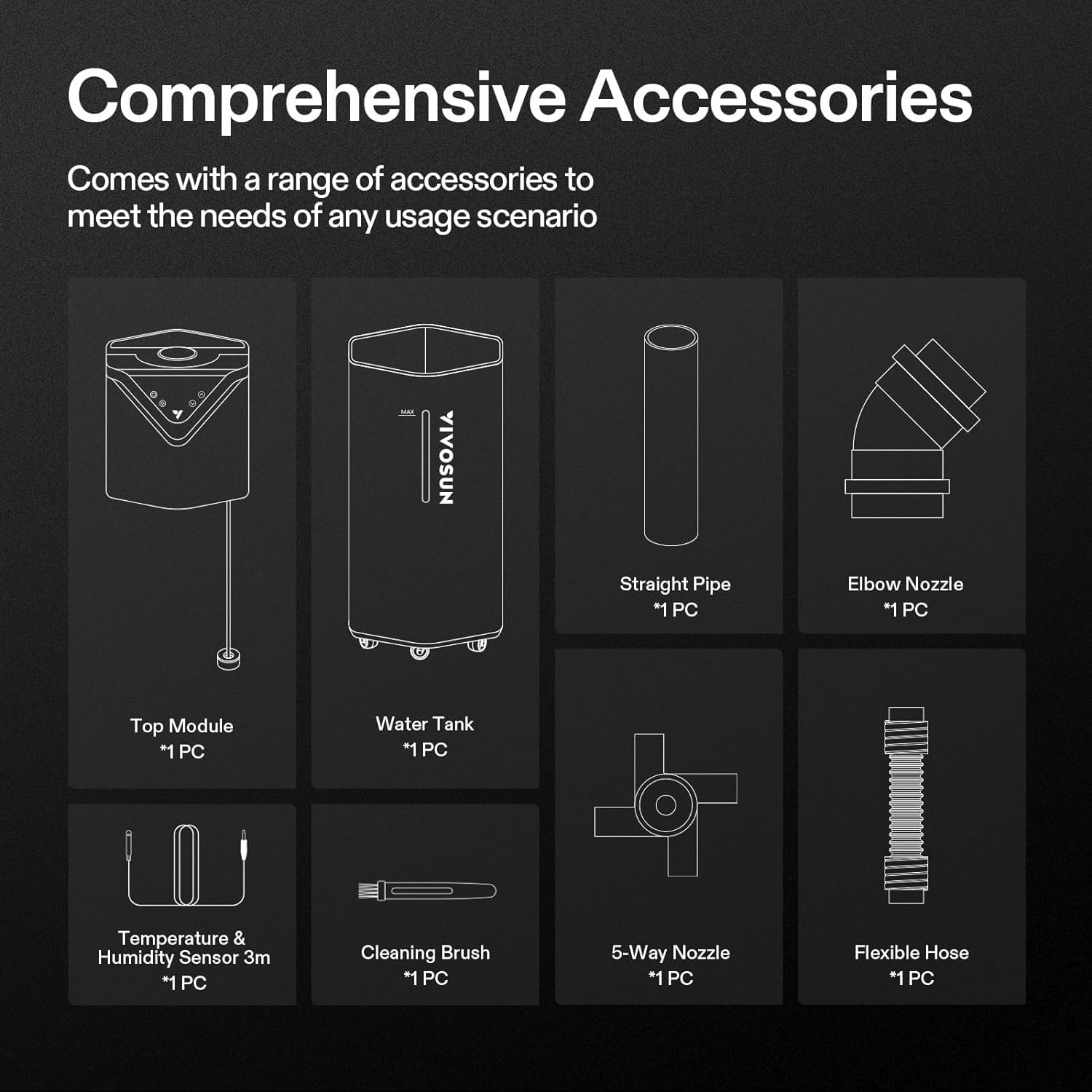 - Versatile Applications: Includes a vapor outlet and flexible hose, allowing the humidifier to be placed inside or outside the grow tent and adapt to any environment; Perfect for grow tents, grow rooms, terrariums, living rooms, bedrooms, and more