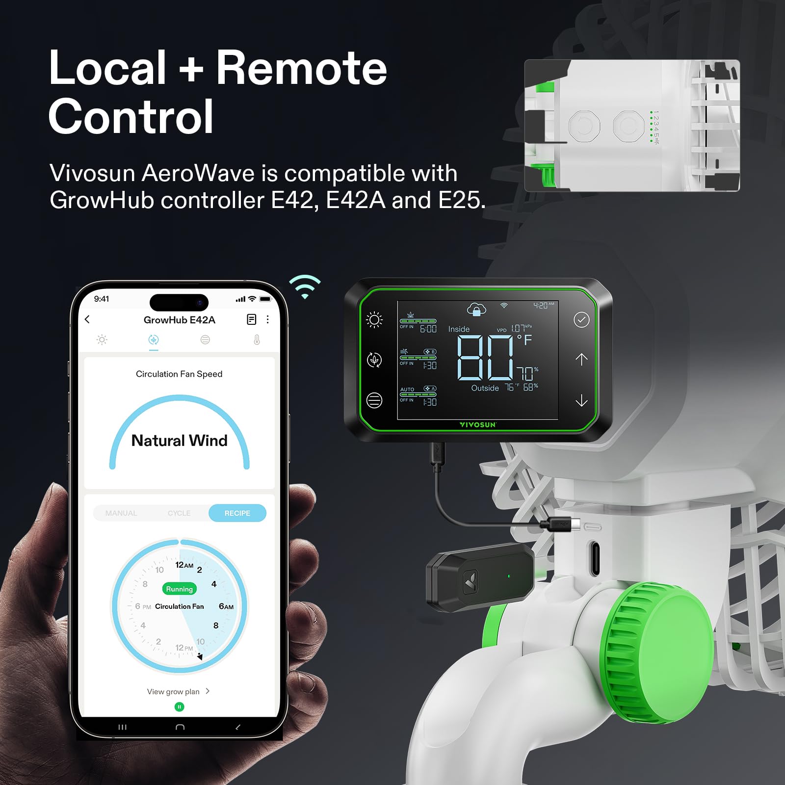- Smart Control with GrowHub: Compatible with the Vivosun GrowHub E42/E42A/E25 for remote app control; Syncs with SGS (Smart Grow System) to operate with other connected devices and optimize your growing environment