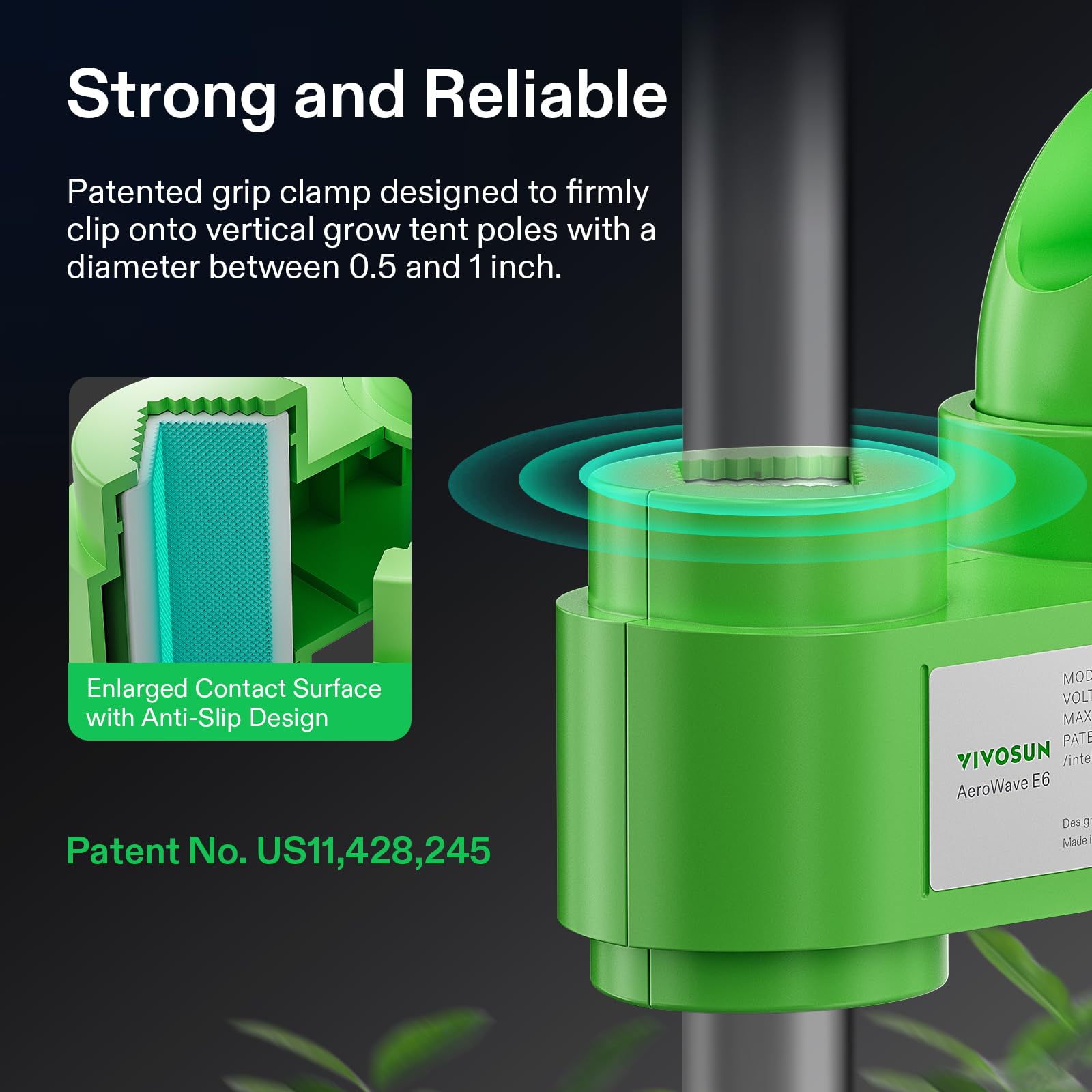 - Designed for Durability: IP54-rated to withstand high temperatures and humidity, making it ideal for grow spaces; Its patented clamp design firmly attaches to round or square poles, and a thick rubber pad prevents slipping and surface damage