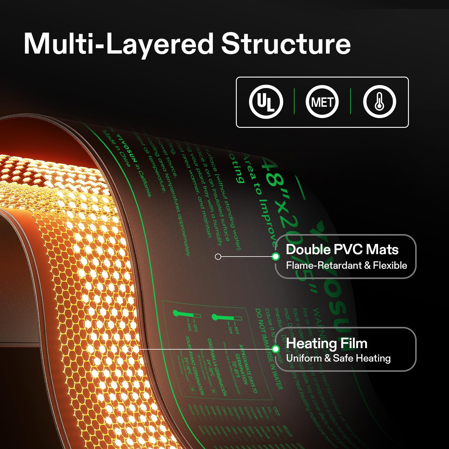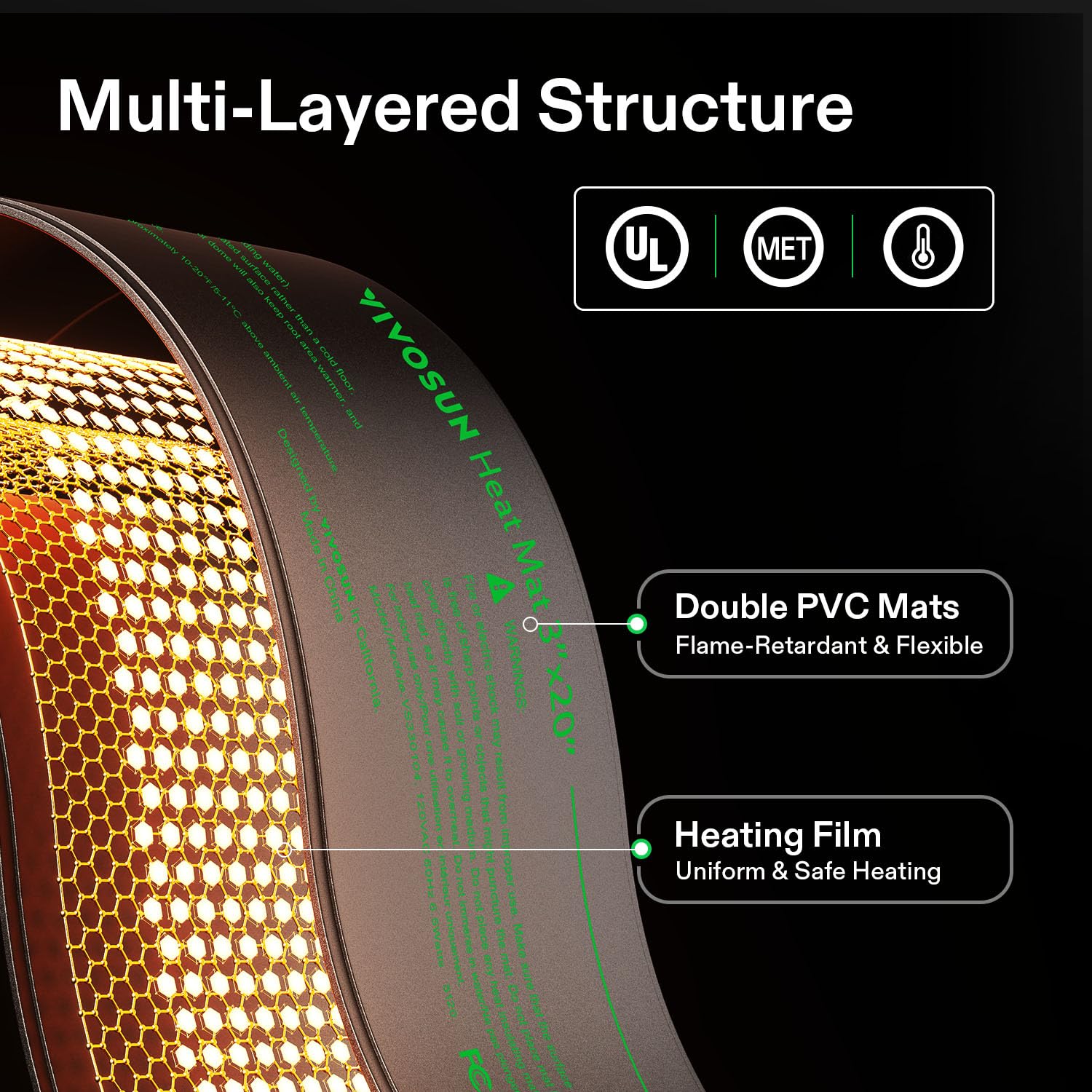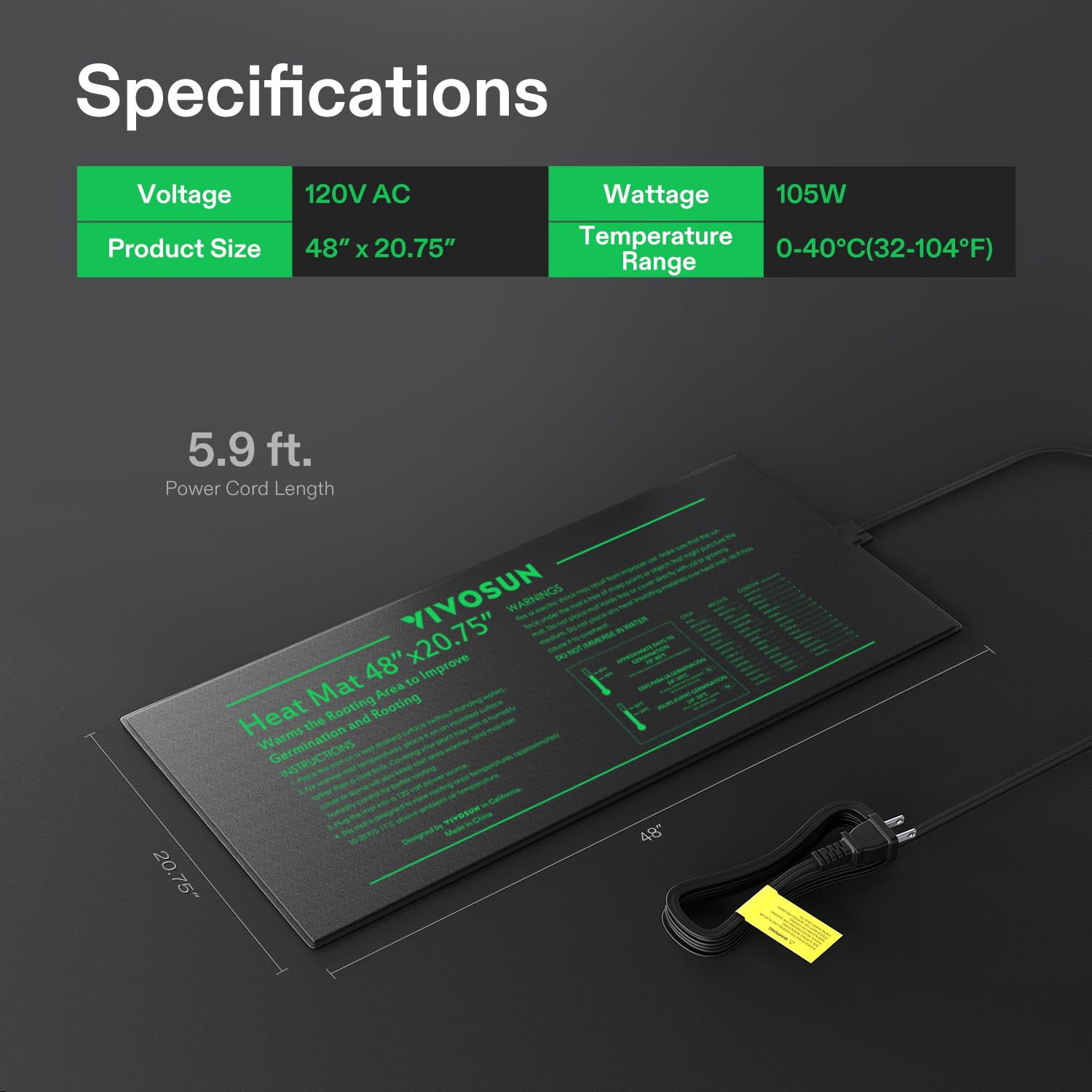 - Reliable Results: The VIVOSUN professional heat mat maintains optimal temperatures around 68-86℉ (20-30℃), perfect for Seedling start and cutting propagation; Made from durable PVC material, it's designed to last