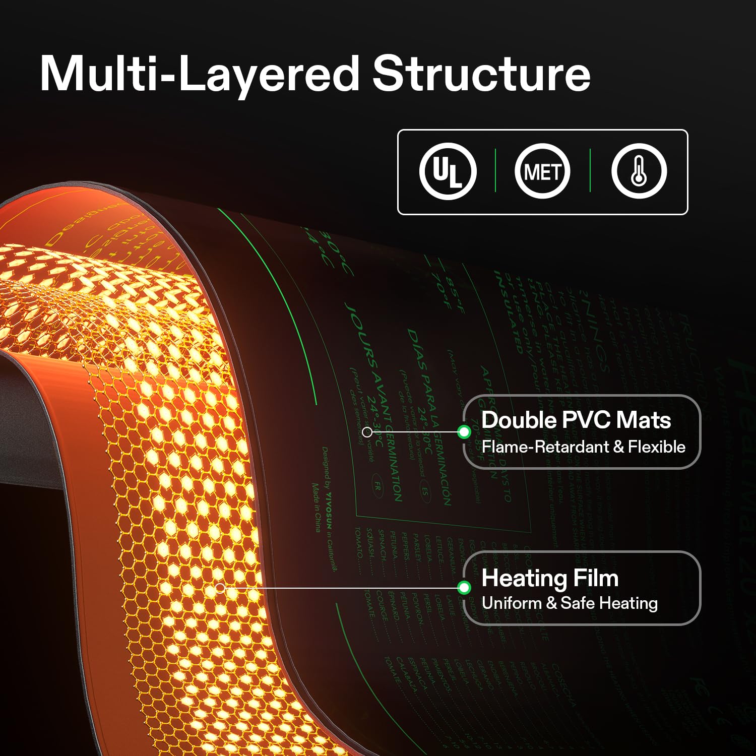 - Stable & Uniform Heat: The advanced far-infrared heating technology of this heat pad provides your plant with a warm environment to create optimal conditions for speeding up germination and accelerating the growth rate; The strengthened heating film with double insulation layers ensures this durable mat will not scorch the root and can produce plenty of invigorating dew when being used in combination with a humidity dome