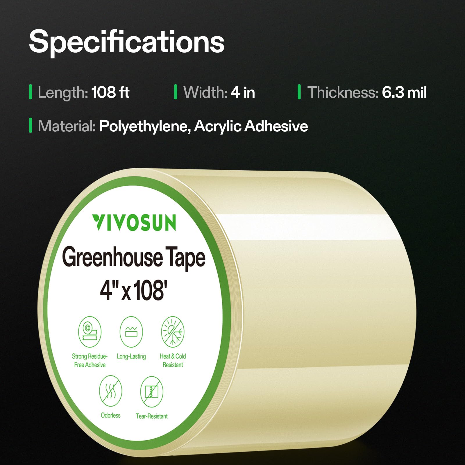 VIVOSUN Greenhouse Repair Tape, 6.3 mil 3" x 108' Weatherproof Clear Poly Patch Tape, Heavy Duty Greenhouse Sheeting Coverings Film Tape for Plastic Sheeting and Tents