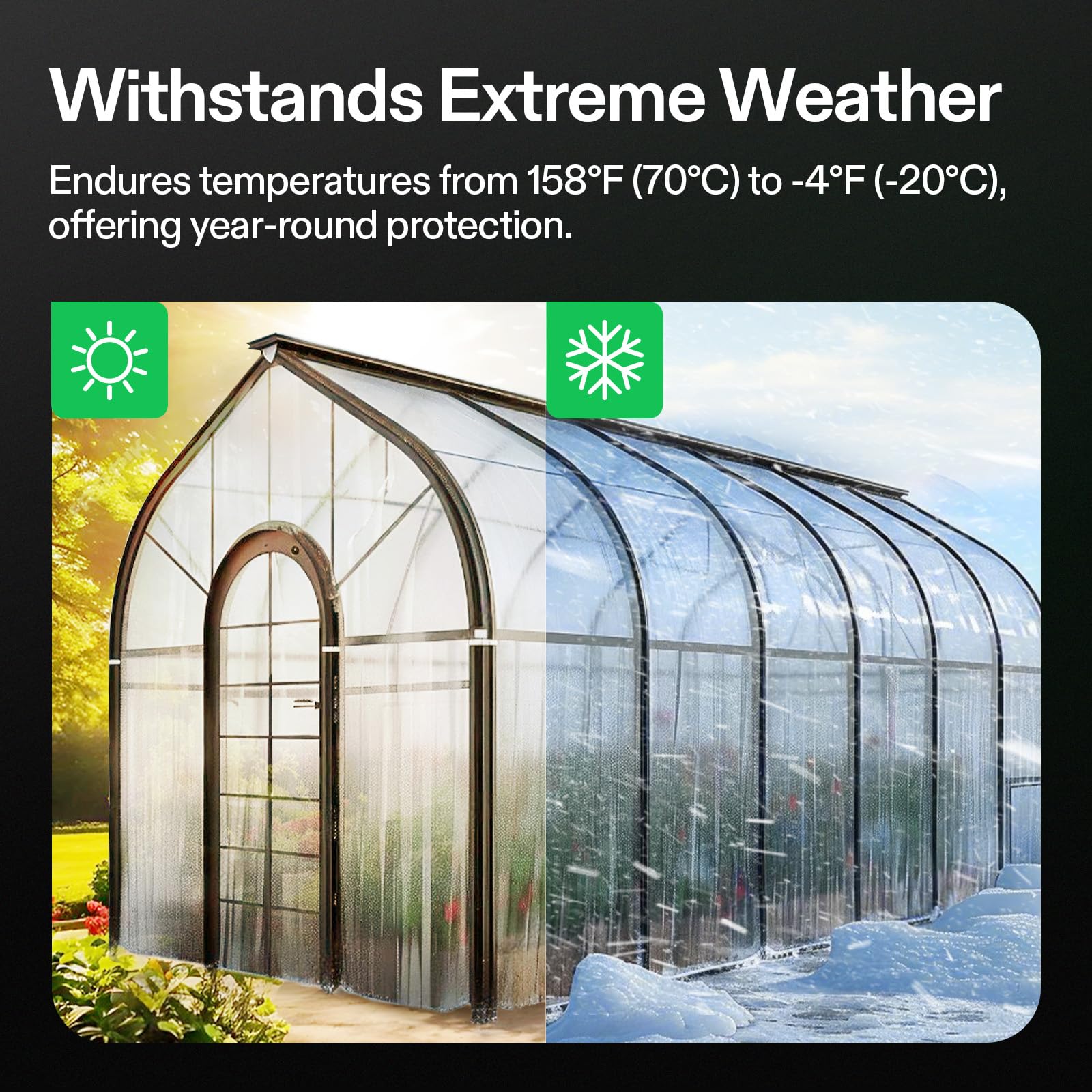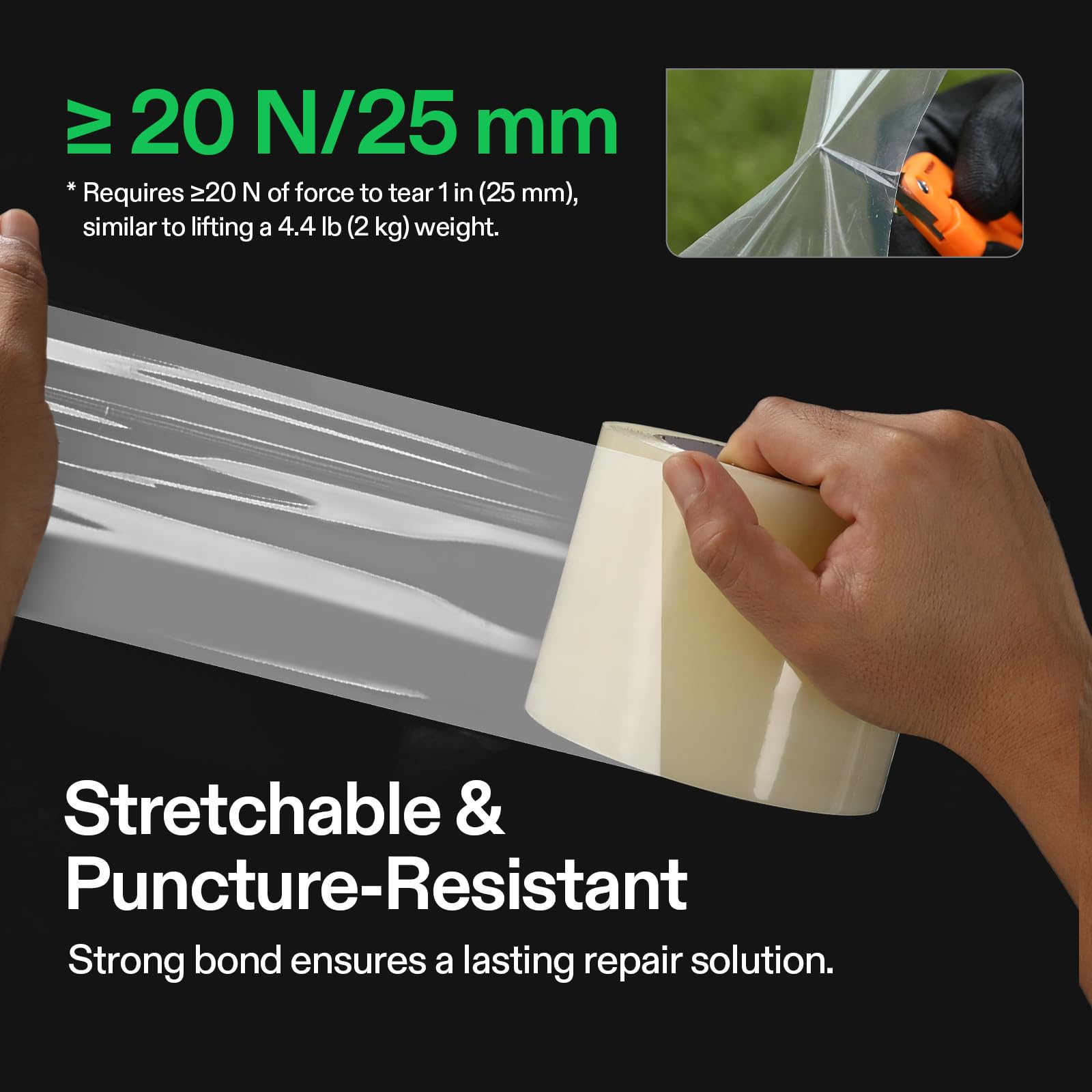 - Stretchable & Puncture-Resistant: Made from 6.3 mil high-density PE material, this tape features high tensile strength and resilience; It resists tears and punctures, ensuring permanent repairs and adding durability to your greenhouse